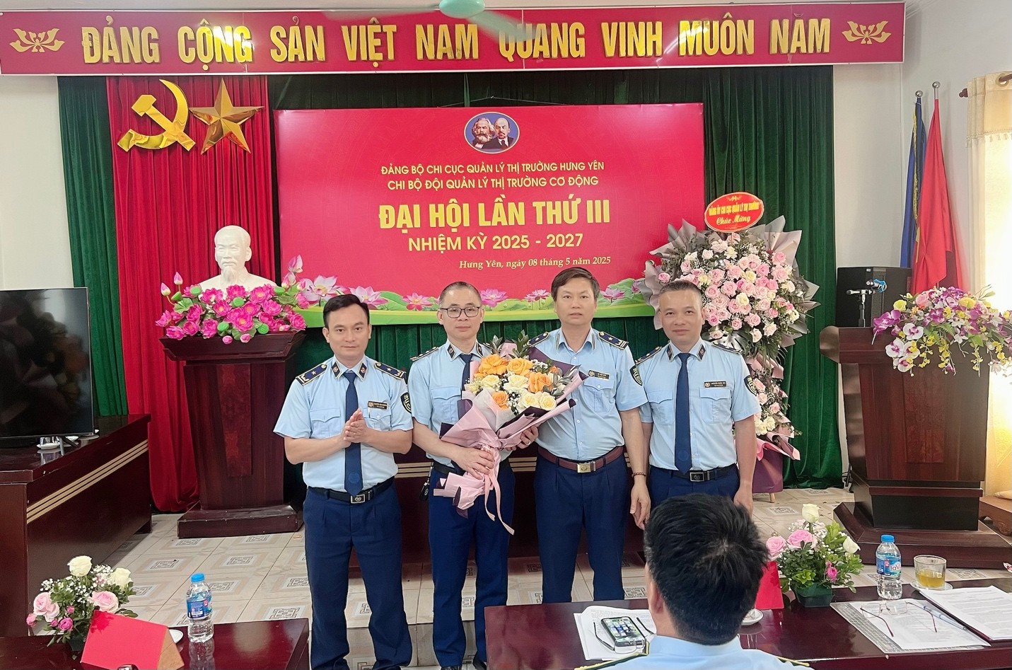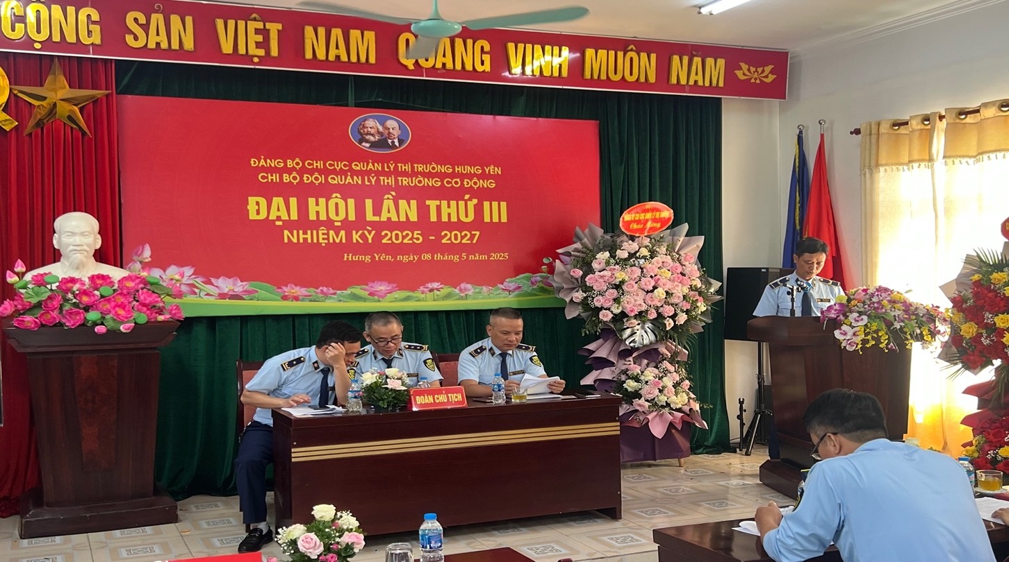 Với tinh thần khẩn chương, tích cực thực hiện Nghị quyết số 18-NQ/TW của Ban Chấp hành Trung ương khóa XII và các Kết luận của Bộ Chính trị khóa XIII về thực hiện sắp xếp tinh gọn bộ máy hoạt động hiệu năng, hiệu lực, hiệu quả; ngay sau khi được thành lập Chi bộ Đội QLTT Cơ động theo Quyết định số 639-QĐ/ĐU, ngày 06/5/2025 của Đảng ủy Chi cục QLTT tỉnh Hưng Yên, do có sự chuẩn bị cẩn thận, chu đáo về mọi mặt và được sự đồng ý, hướng dẫn trực tiếp của Đảng ủy Chi cục, vào sáng ngày 08/5/2025 Chi bộ Đội QLTT Cơ động, đã tổ chức thành công Đại hội Chi bộ nhiệm kỳ 2025 - 2027.