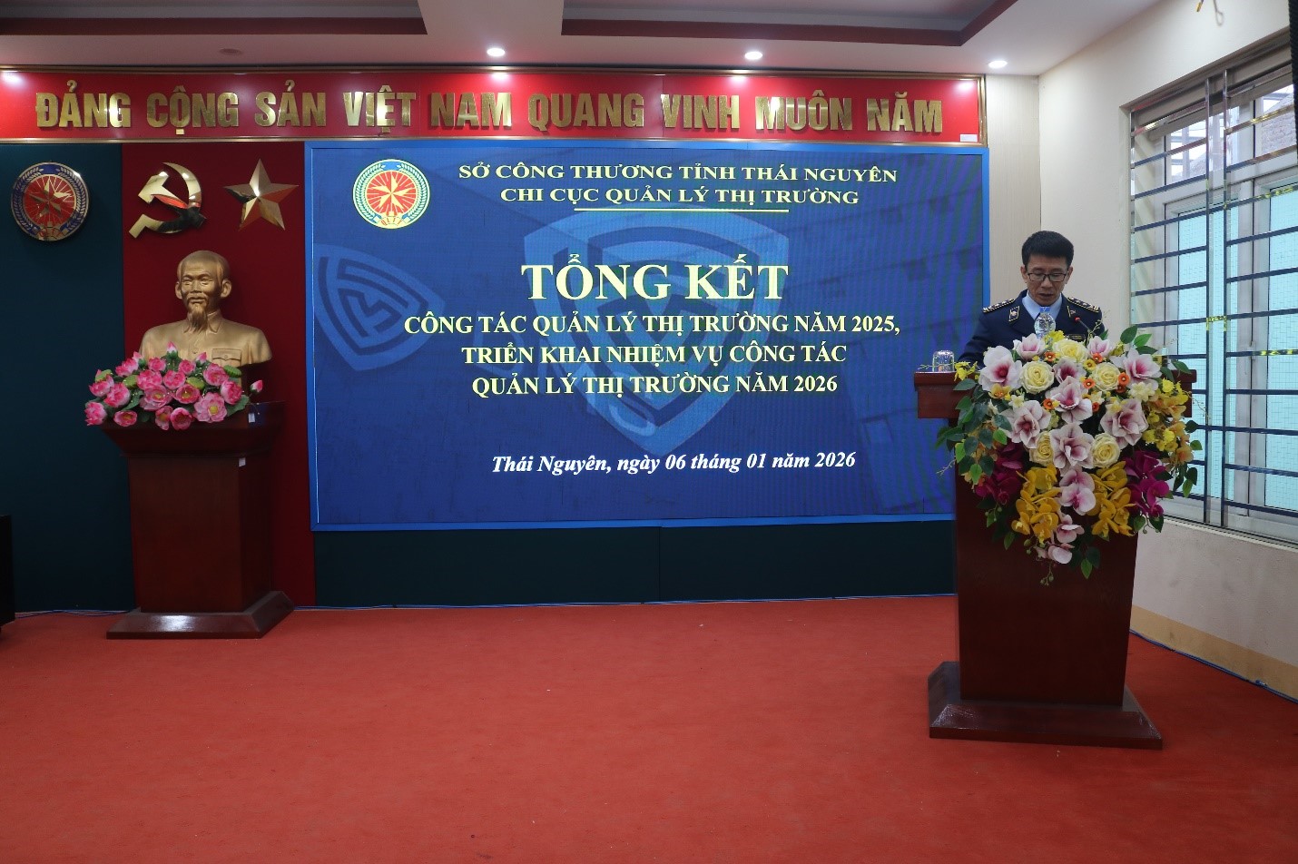 Hội nghị tổng kết công tác năm 2025 của Chi cục Quản lý thị trường tỉnh Thái Nguyên đã diễn ra nghiêm túc, hiệu quả, tạo khí thế thi đua và quyết tâm cao trong toàn thể cán bộ, đảng viên, công chức và người lao động, hướng tới hoàn thành thắng lợi nhiệm vụ năm 2026.