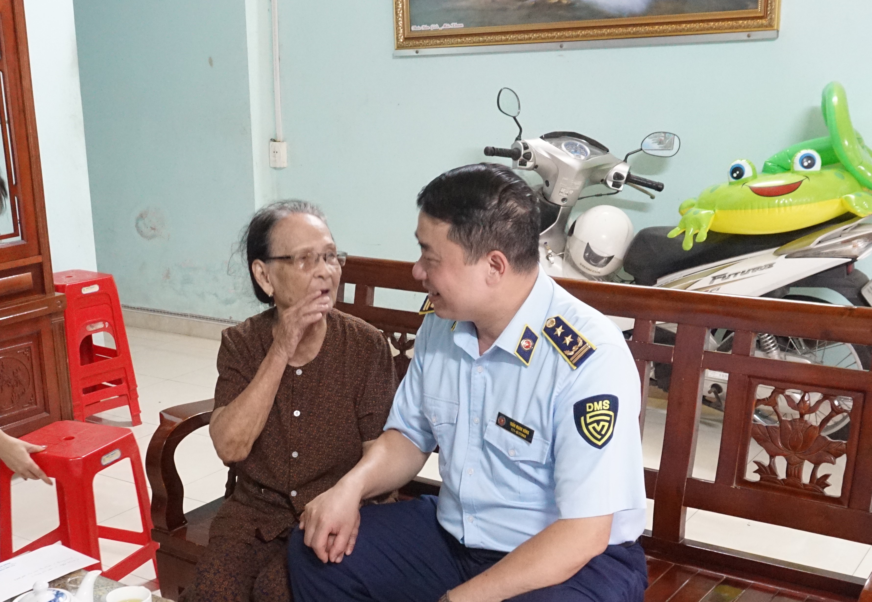 Đồng chí Trần Mạnh Hùng, Bí thư Đảng ủy, Cục trưởng ân cần thăm hỏi sức khỏe Mẹ