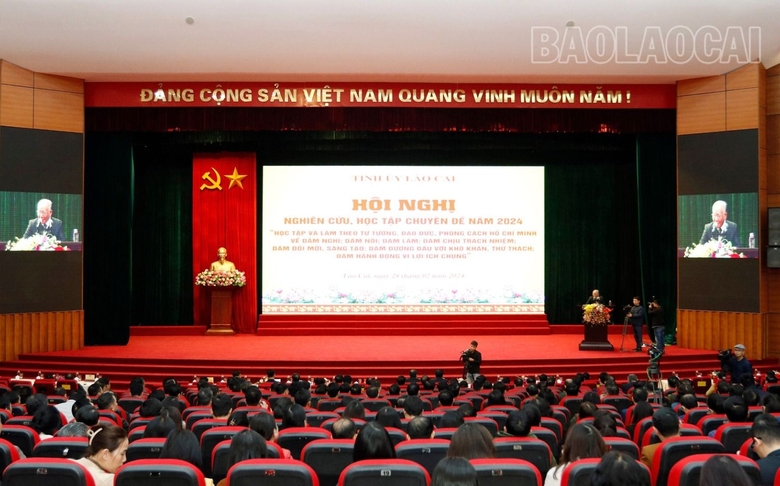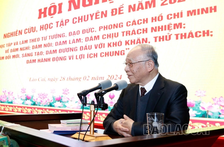 Tại hội nghị, các đại biểu đã được nghe Giáo sư - Tiến sĩ Hoàng Chí Bảo, chuyên gia cao cấp, nguyên Ủy viên Hội đồng Lý luận Trung ương triển khai, quán triệt chuyên đề năm 2024 về “Học tập và làm theo tư tưởng, đạo đức, phong cách Hồ Chí Minh về dám nghĩ; dám nói; dám làm; dám chịu trách nhiệm; dám đổi mới, sáng tạo; dám đương đầu với khó khăn, thử thách; dám hành động vì lợi ích chung”.