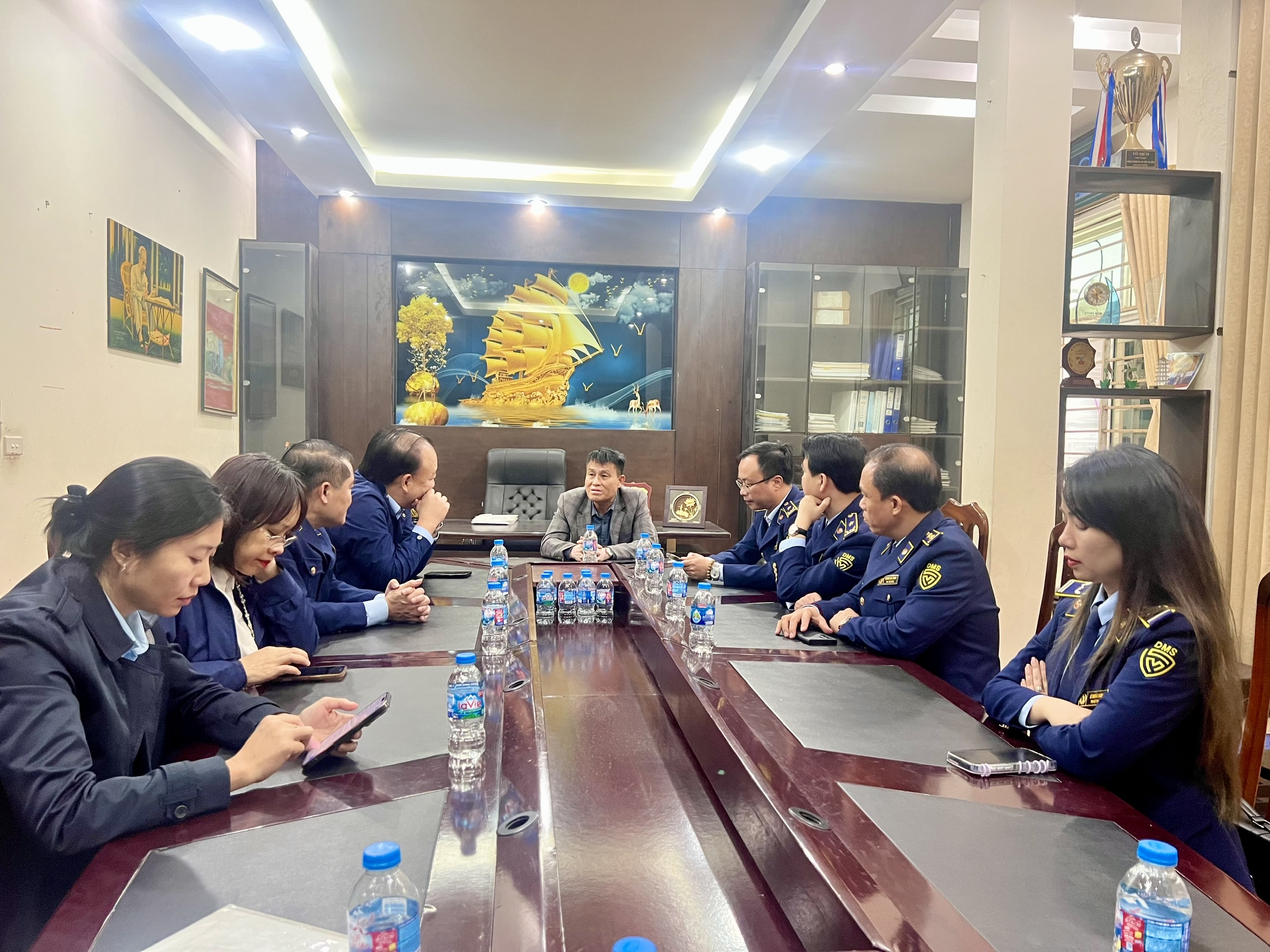Cũng trong khuôn khổ chuyến công tác, Đoàn đã làm việc với lãnh đạo Chi cục Quản lý thị trường TP. Hà Nội, lãnh đạo một số phòng chuyên môn và Đội Quản lý thị trường số 24. Báo cáo tại buổi làm việc cho thấy, lực lượng Quản lý thị trường Hà Nội đã chủ động xây dựng và triển khai kế hoạch cao điểm, tập trung kiểm tra các nhóm mặt hàng thiết yếu có nhu cầu tiêu dùng lớn trong dịp Tết, đồng thời tăng cường kiểm soát, xử lý các hành vi buôn lậu, gian lận thương mại và hàng giả.