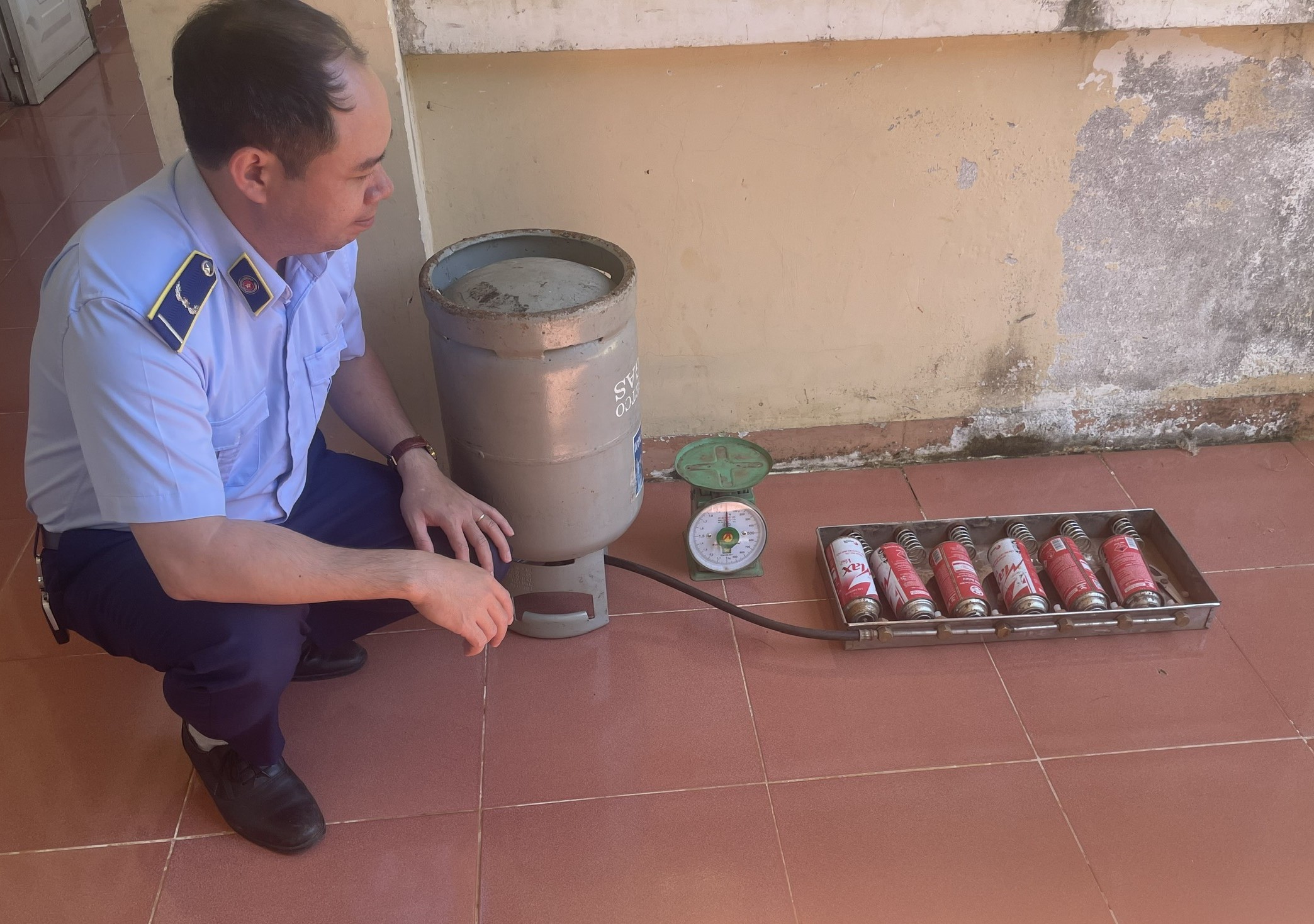 Trước đó, từ phản ánh của người tiêu dùng, ngày 26/9/2025, Đội Quản lý thị trường số 12 tổ chức kiểm tra đột xuất cơ sở do ông N.T.B làm chủ. Tại thời điểm kiểm tra, lực lượng chức năng phát hiện cơ sở này đang sử dụng 01 bộ dụng cụ (gồm: 01 khay để chai LPG mini có 6 van, 01 LPG chai loại 12kg đã qua sử dụng còn chứa khí bên trong, 01 cân loại 2kg hiệu Nhơn Hòa và 6 chai LPG mini) để san, chiết, nạp LPG trái phép từ LPG chai loại 12 kg sang chai LPG mini cho khách. Hành vi này bị xác định là hành vi san, chiết, nạp LPG trái phép từ chai LPG dung tích lớn sang chai LPG mini, vi phạm nghiêm trọng quy định pháp luật về kinh doanh khí.