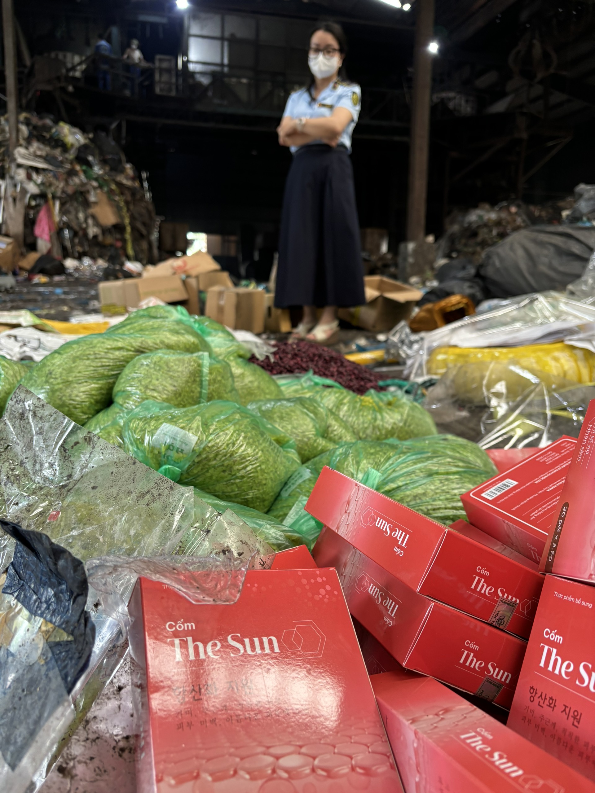 Cùng với số thực phẩm kém chất lượng là số lượng lớn các sản phẩm thực phẩm nhập lậu, không rõ xuất xứ như trà khô, sữa chuối, nước cốt dừa, trà sữa dạng bột, cốm khô... chủ yếu được sử dụng để làm bánh ngọt, pha chế các loại trà sữa... cũng bị buộc tiêu hủy. Việc tiêu hủy được thực hiện ở Công ty Môi trường xanh Minh Phúc (Bình Giang, Hải Dương).