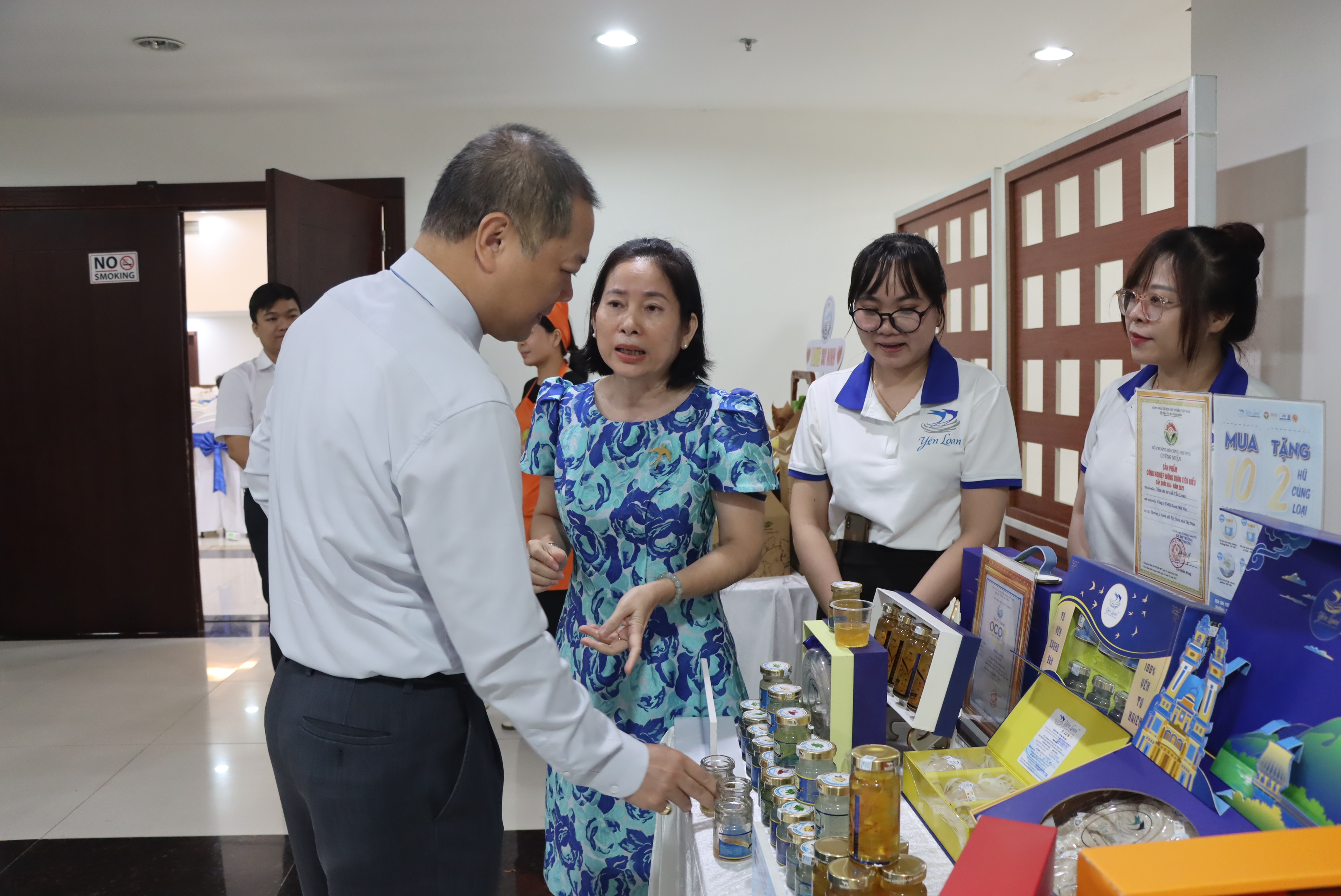 Ông Nguyễn Anh Sơn, Cục trưởng Cục Xuất nhập khẩu, Bộ Công Thương Việt Nam thăm gian hàng trưng bày yến chưng