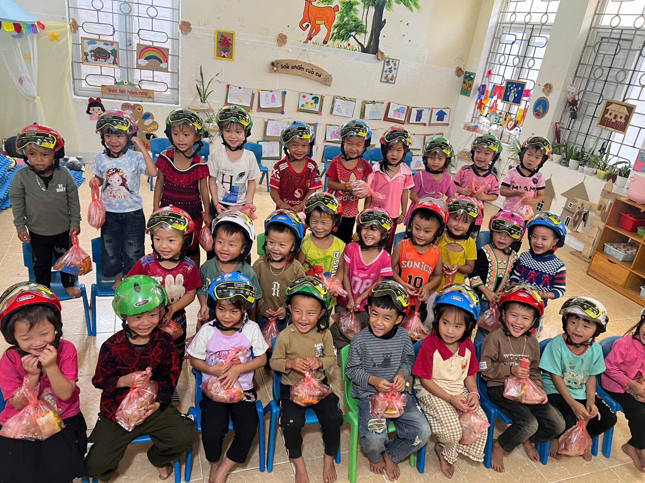 Tại chương trình, Đoàn đã trao 36 chiếc mũ bảo hiểm, 07 thùng bánh kẹo và 09 thùng nhu yêu phẩm như nước mắm, bột canh, mỳ chính…cho các các em học sinh có hoàn cảnh khó khăn của Trường Mầm non Phúc Than và điểm trường bản Khì.
