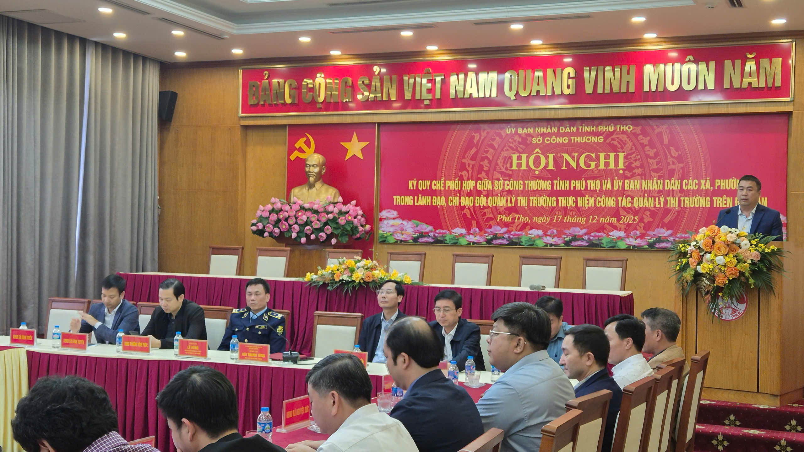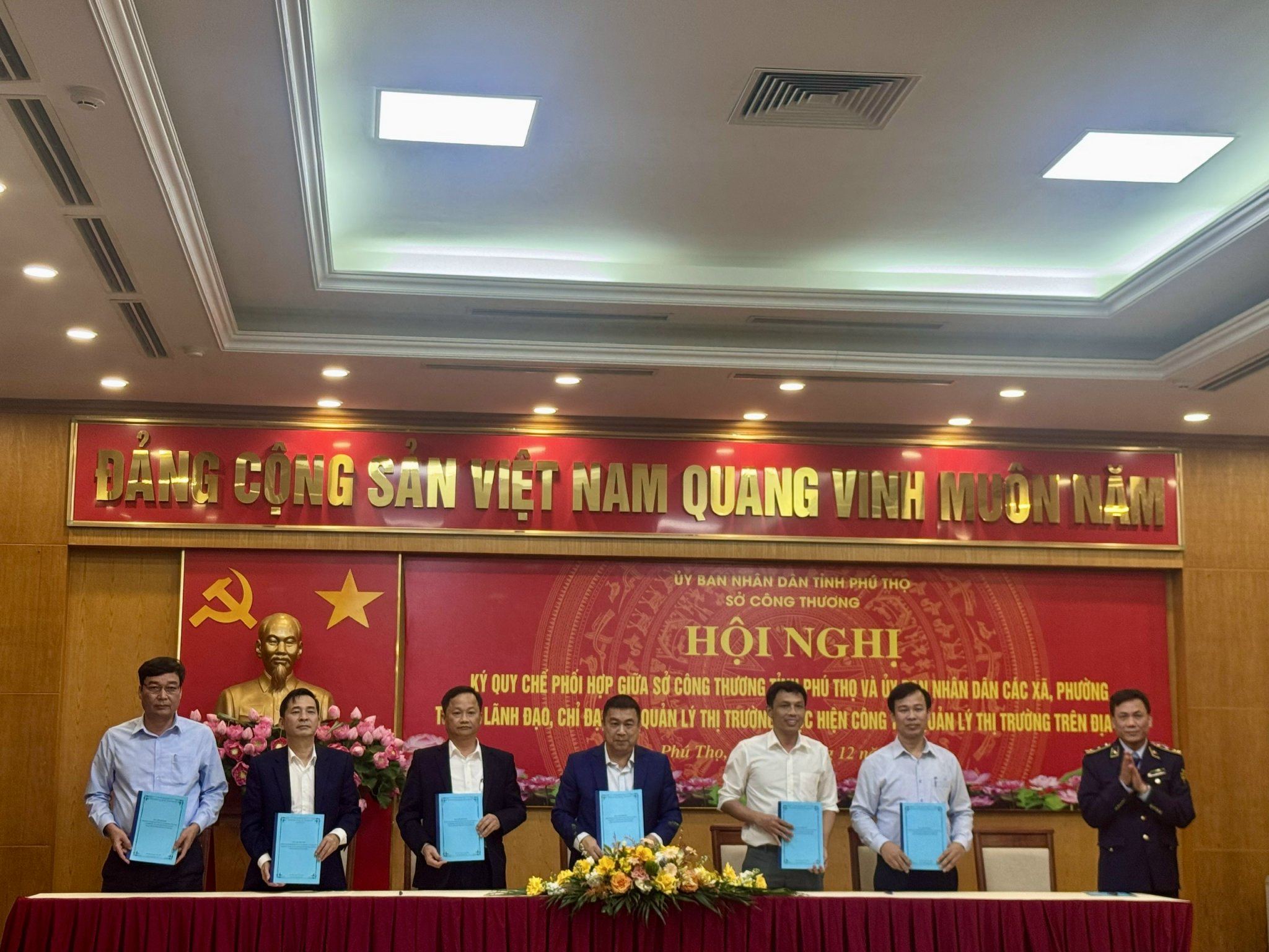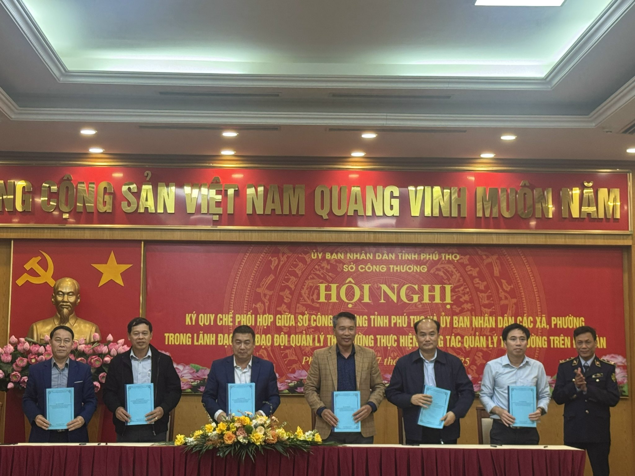 Để thống nhất trong điều hành, lãnh đạo, chỉ đạo góp phần nâng cao hiệu quả công tác Quản lý thị trường tại địa phương, ngày 17/12/2025, tại Trung tâm Hội nghị khu vực tỉnh Vĩnh Phúc cũ, Sở Công Thương tỉnh Phú Thọ cùng với UBND 04 phường, 32 xã khu vực Vĩnh Phúc cũ tổ chức Hội nghị Ký Quy chế phối hợp trong lãnh đạo, chỉ đạo các Đội Quản lý thị trường thực hiện nhiệm vụ chính trị trên địa bàn